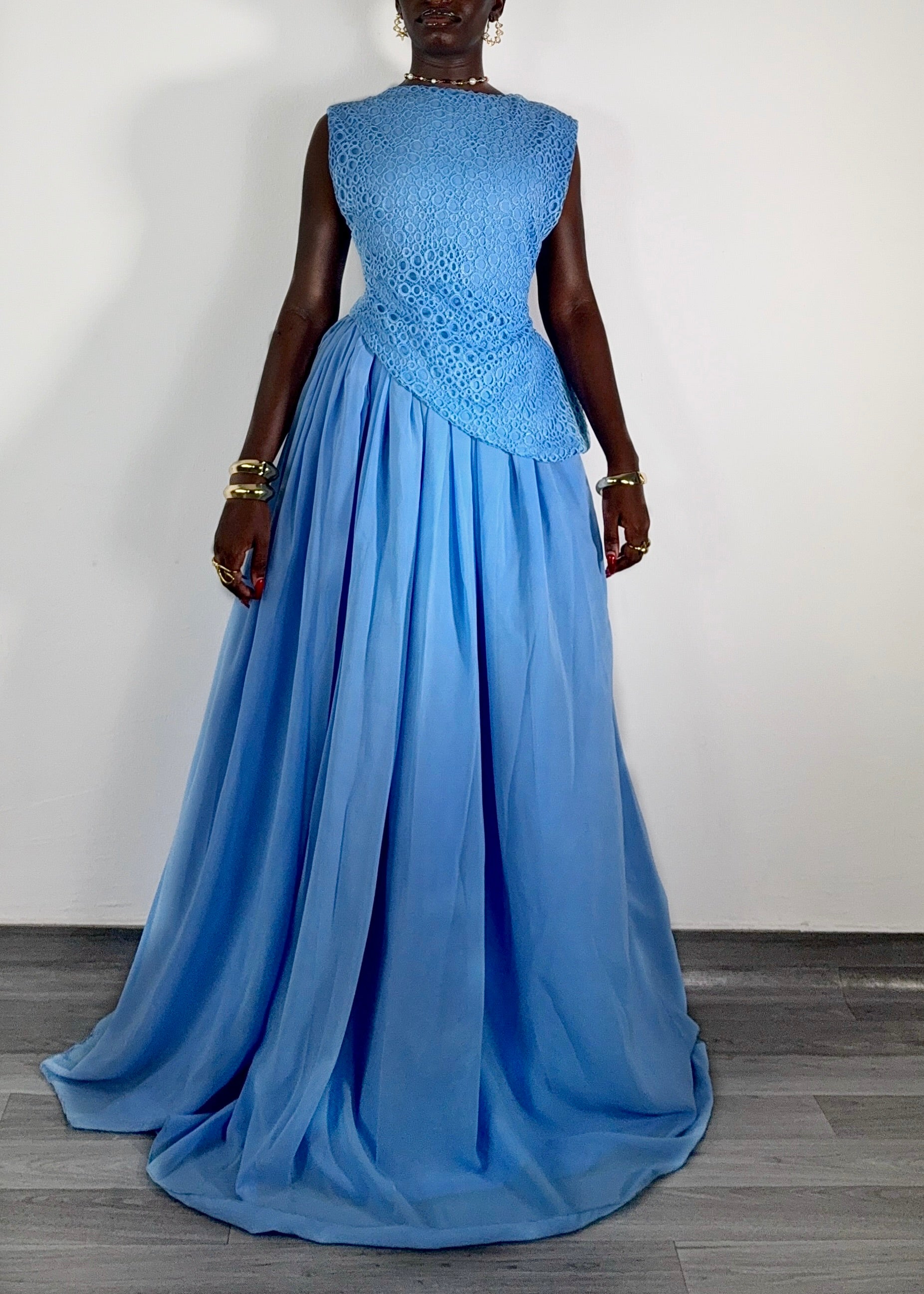 Fabric: Non-stretch chiffon lined with non-stretch satin.